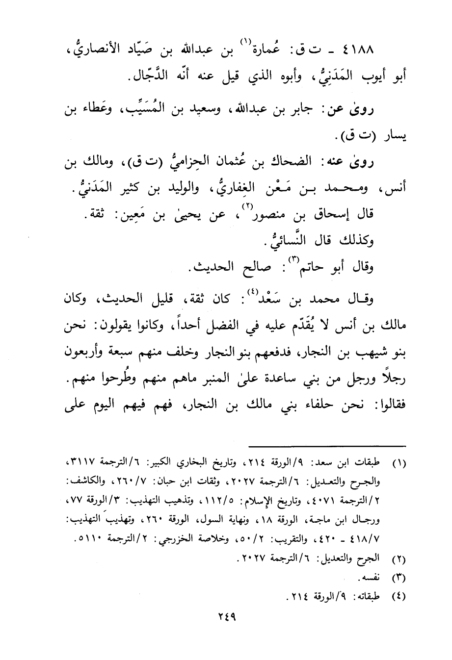 4188 - ت ق: عمارة بن عَبد اللَّه بن صياد الأَنْصارِيّ (1) ، أَبُو أيوب المدني، وأبوه الَّذِي قِيلَ عَنْهُ أنه الدجال.
