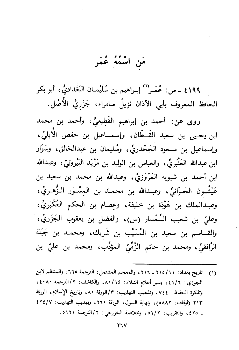 4199 - س: عُمَر إبراهيم بن سُلَيْمان البغدادي (1) ، أَبُو بكر الحافظ المعروف بأبي الآذان نزيل سامراء، جزري الأصل.