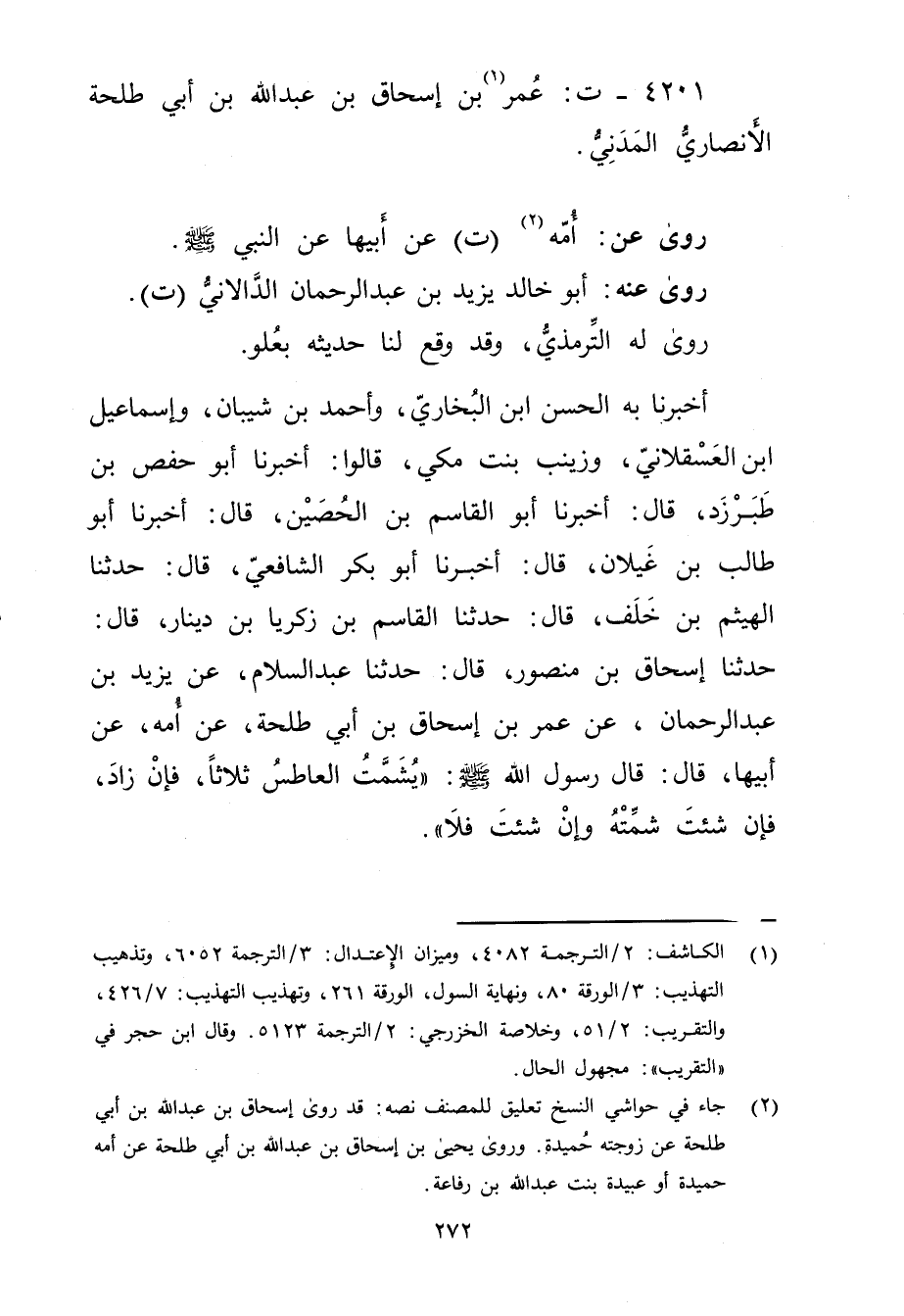 4201 - ت - عُمَر بن إسحاق بن عَبد الله بْن أَبي طلحة الأَنْصارِيّ المدني (1) .