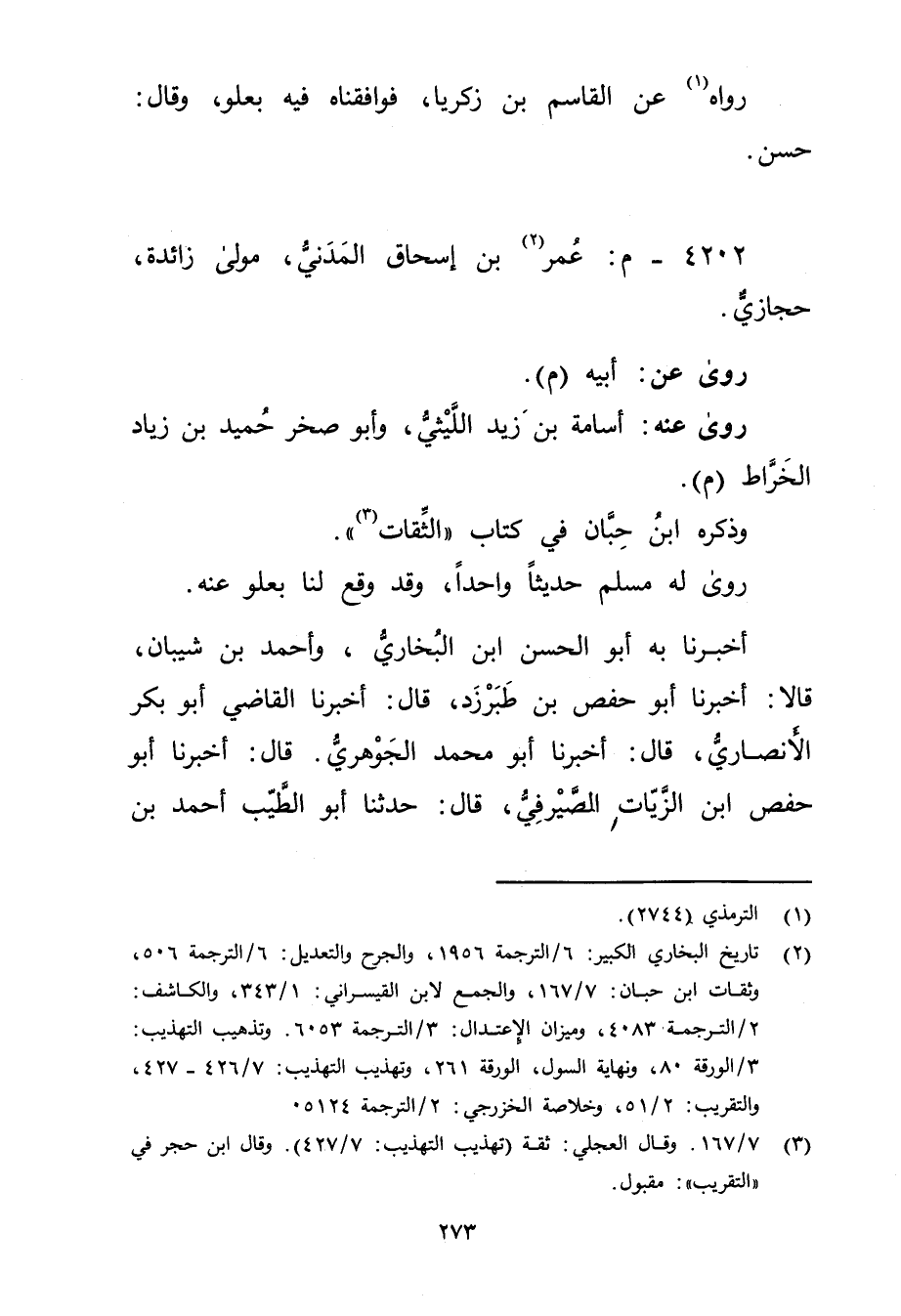 4202 - م: عُمَر بن إسحاق المدني (2) ، مولى زائدة، حجازي.