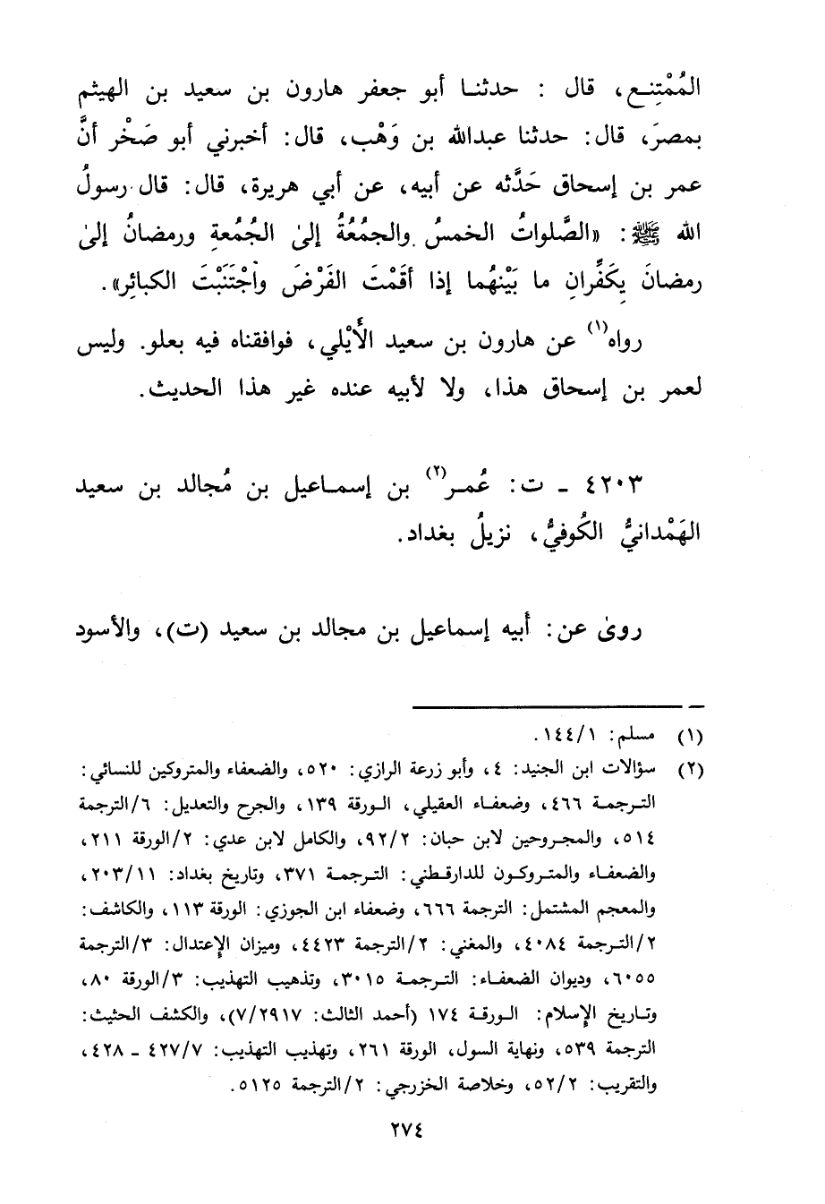 4203 - ت: عُمَر بْن إِسْمَاعِيل بْن مجالد بن سَعِيد الهمذاني الكوفي (2) ، نزيل بغداد.