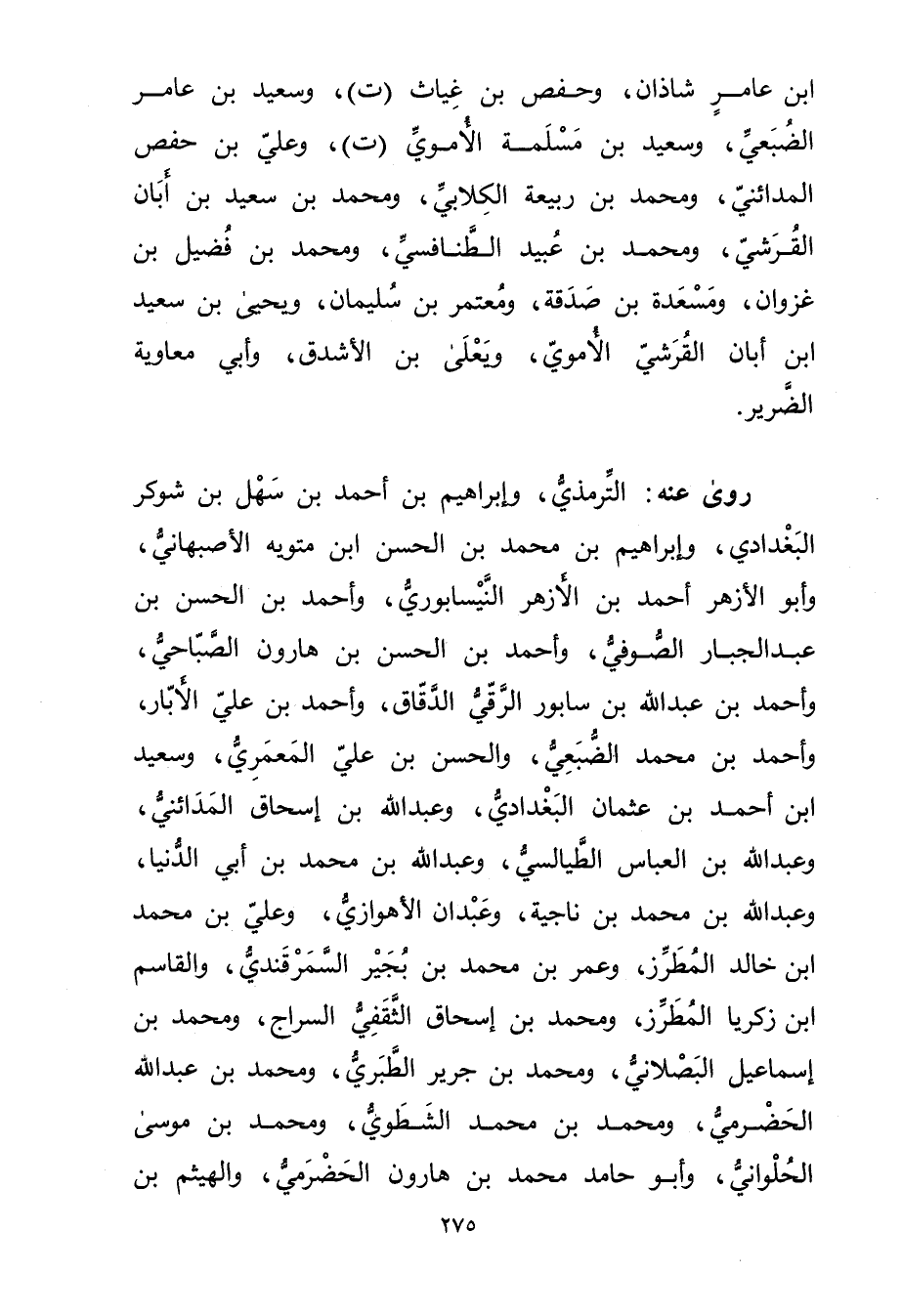 رَوَى عَنه: التِّرْمِذِيّ، وإبراهيم بْن أحمد بْن سهل بْن شوكر البغدادي، وإبراهيم بْن مُحَمَّد بْن الْحَسَن بْن متويه الأصبهاني، وأبو الأزهر أَحْمَد بْن الأزهر النيسابوري، وأحمد بْن الْحَسَن بْن عَبْد الْجَبَّارِ الصوفي، وأحمد بْن الحسن بْن هارون الصباحي، وأحمد بْن عَبد اللَّه بْن سابور الرَّقِّيّ الدقاق، وأحمد بْن علي الأبار، وأحمد بْن محمد الضبعي، والحسن بْن علي المعمري، وسَعِيد ابن أحمد بْن عثمان البغدادي، وعبد اللَّه بْن إسحاق المدائني، وعبد اللَّهِ بْن العباس الطَّيَالِسِيّ، وعَبْد الله بْن مُحَمَّد بْن أَبي الدنيا، وعبد الله بْن مُحَمَّد بْن ناجية، وعبدان الأهوازي، وعلي بن محمد ابن خالد المطرز، وعُمَر بْن محمد بن بجير السمرقندي، والقاسم ابن زكريا المطرز، ومحمد بْن إسحاق الثقفي السراج، ومحمد بْن إِسْمَاعِيل البصلاني، ومحمد بْن جرير الطبري، ومحمد بْن عَبد الله الحضرمي، ومحمد بْن محمد الشطوي، ومحمد بْن موسى الحلواني، وأبو حامد محمد بْن هارون الحضرمي، والهيثم بْن