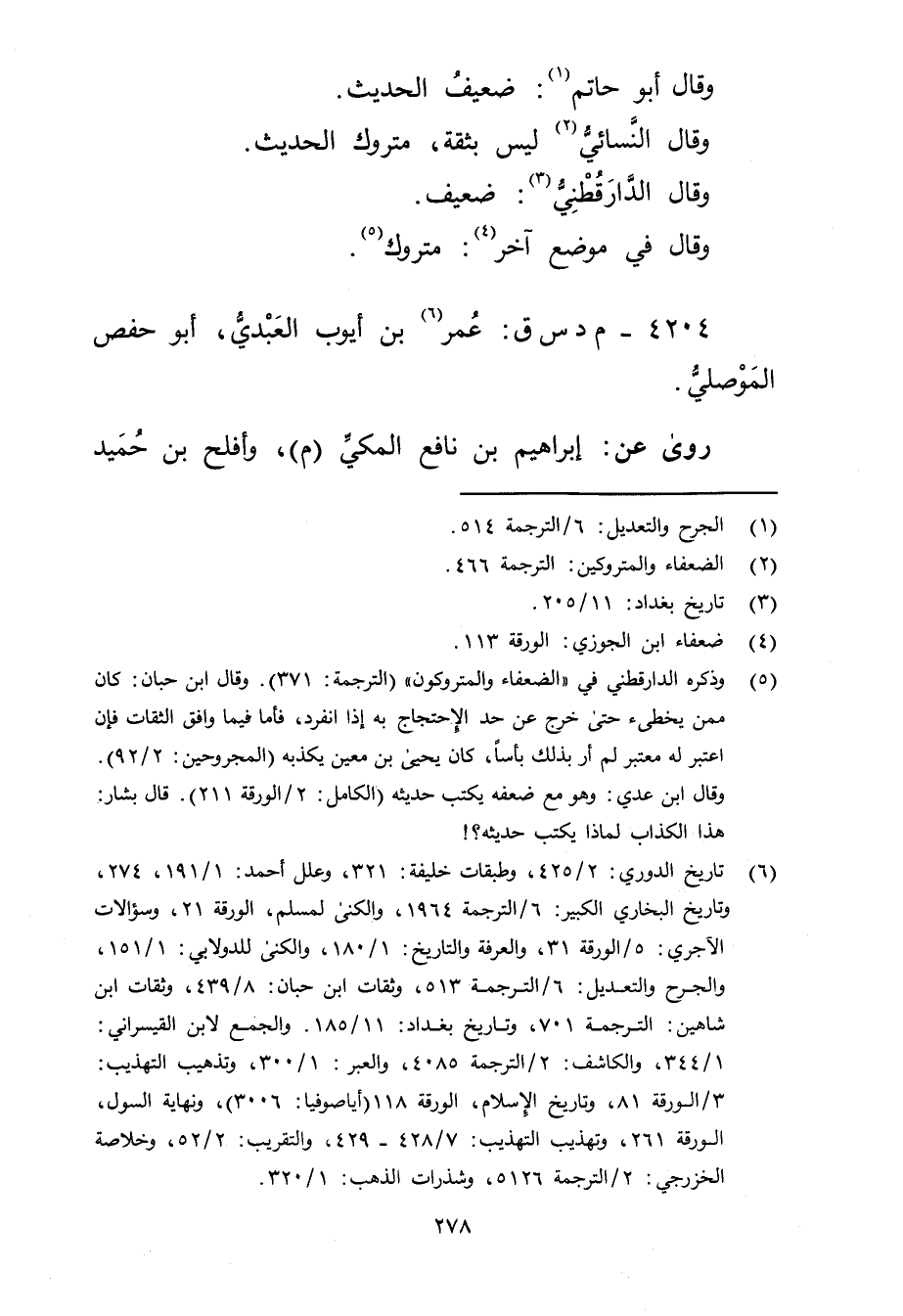 4204 - م د س ق: عُمَر بن أيوب العبدي (6) ، أَبُو حفص الموصلي.