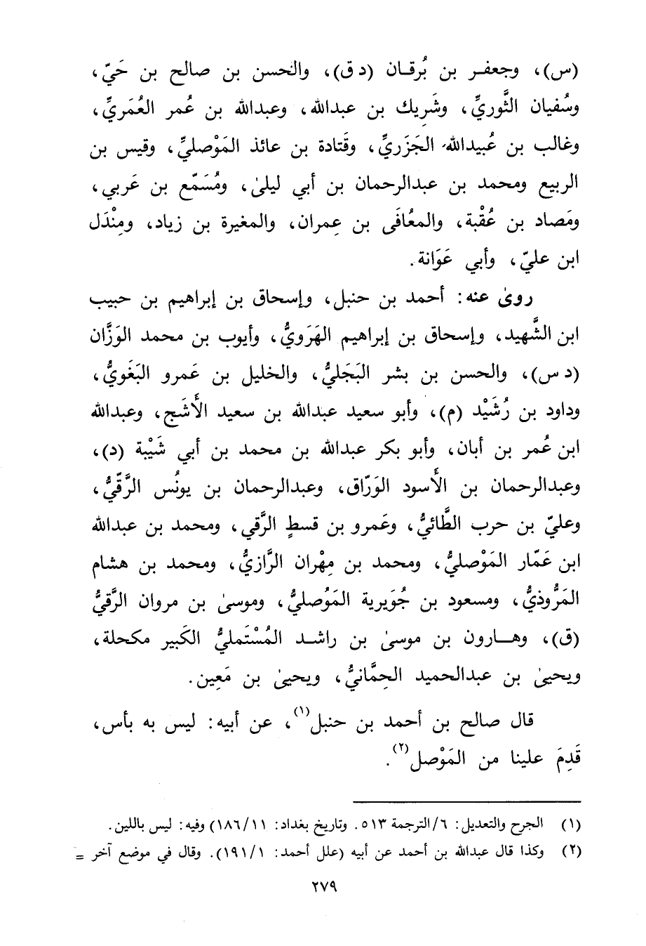 (2) وكذا قال عَبد اللَّهِ بْن أَحْمَد عَن أبيه (علل أَحْمَد: 1 / 191) . وَقَال فِي موضع آخر =