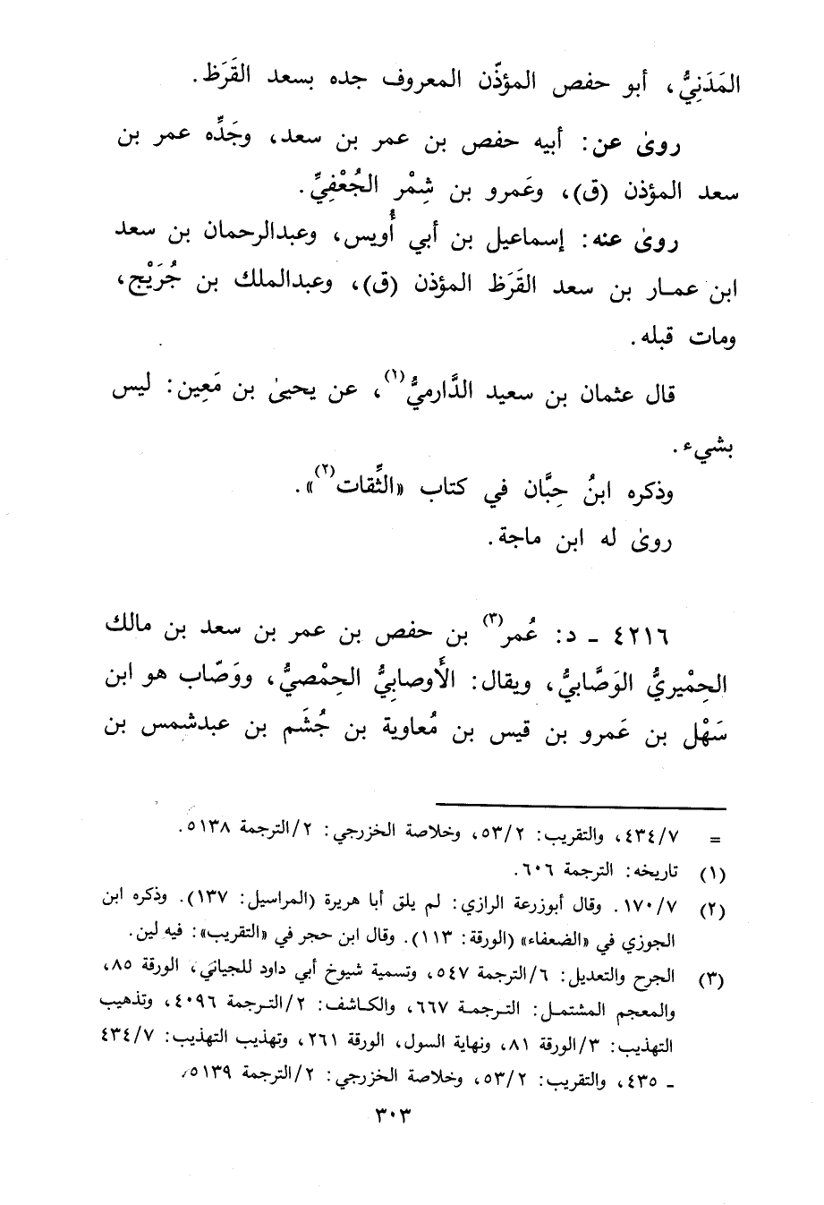 4216 - د: عُمَر بْن حفص بْن عُمَر بْن سعد بن مالك الحميري الوصابي (3) ، ويُقال: الأَوصابي الحمصي، ووصاب هُوَ ابْن سهل بْن عَمْرو بْن قيس بْن معاوية بْن جشم بن عبدشمس بْن