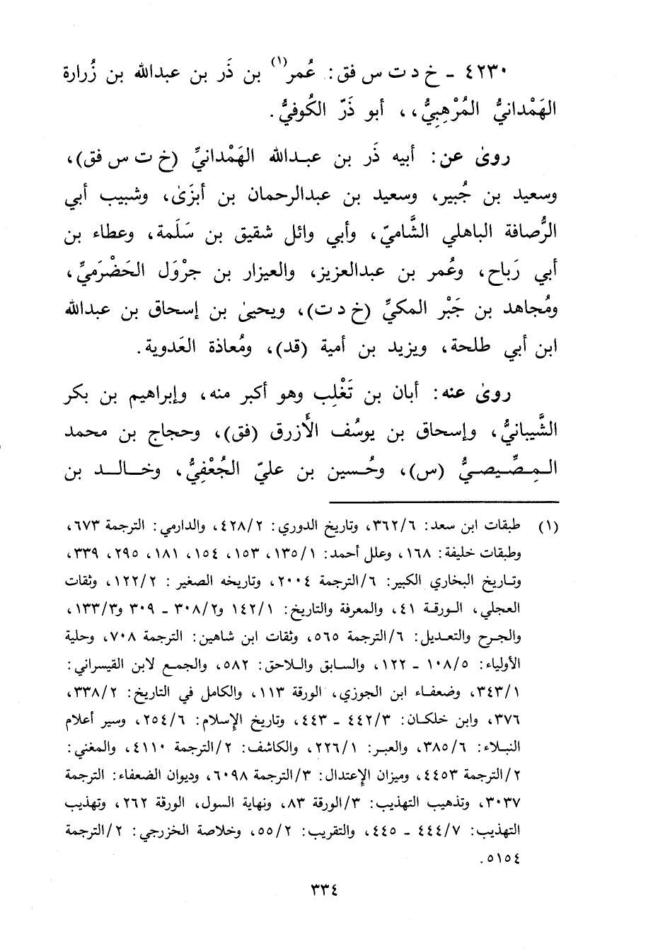 4230 - خ د ت س فق: عُمَر بن ذر بن عَبد اللَّهِ بن زرارة الهمداني المرهبي (1) ، أَبُو ذر الكوفي.