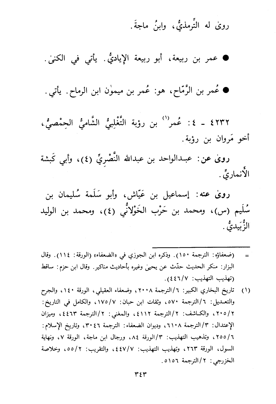 4232 - 4: عُمَر بن رؤبة التغلبي الشامي الحمصي (1) ، أخو مروان بْن رؤبة.