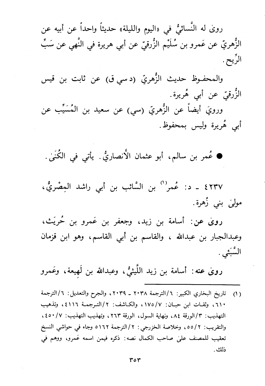 4237 - د: عُمَر بن السائب بن أَبي راشد المِصْرِي (1) ، مولى بني زهرة.