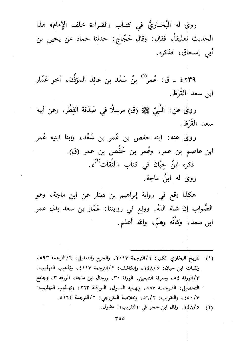 4239 - ق: عُمَر بن سعد بن عائذ المؤذن (1) ، أخو عمار ابن سعد القرظ.