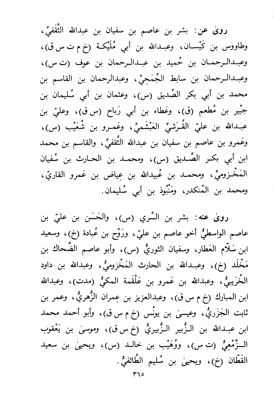 رَوَى عَن: بشر بْن عاصم بن سفيان بن عَبد اللَّهِ الثقفي، وطاووس بْن كيسان، وعبد اللَّه بْن أَبي ملكية (خ م ت س ق) ، وعبد الرحمن بْن حميد بْن عَبْد الرحمن بْن عوف (ت س) ، وعبد الرحمن بْن سابط الجمحي، وعبد الرحمن بْن القاسم بن محمد بن أَبي بر الصديق (س) ، وعثمان بْن أَبي سُلَيْمان بن جبير بن معطم (ق) ، وعطاء بْن أَبي رباح (س ق) ، وعلي بن عَبد اللَّه بْن علي القرشي العبشمي، وعَمْرو بْن شعيب (س) ، وعَمْرو بن عاصم بن سفيان بن عَبد اللَّه الثقفي، والقاسم بْن محمد ابن أَبي بكر الصدق (س) ، ومحمد بْن الحارث بْن سفيان المخزومي، ومحمد بْن عُبَيد الله بن عياض بن عَمْرو القاري، ومحمد بْن المنكدر، ومنبوذ بْن أَبي سُلَيْمان.