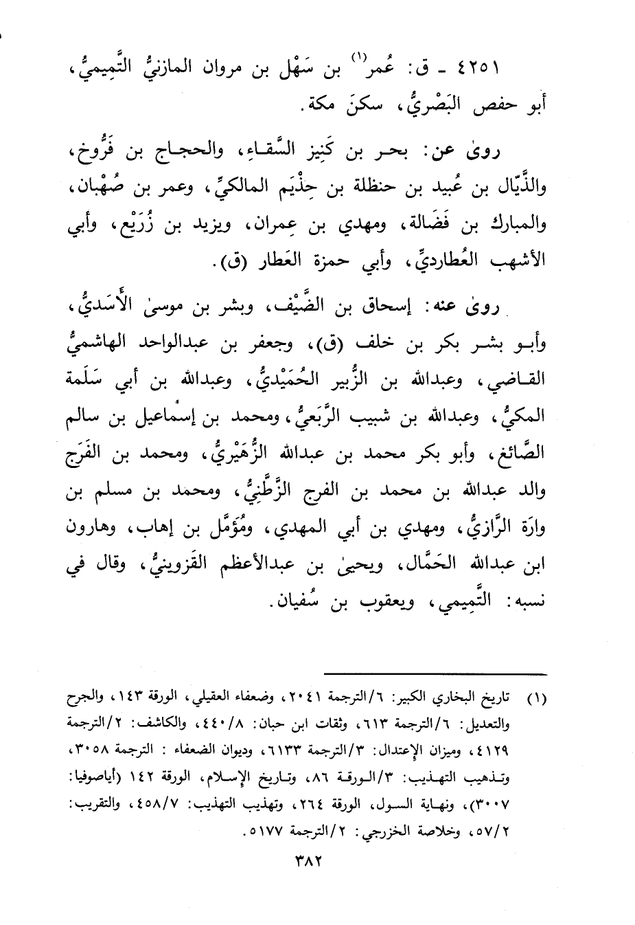 4251 - ق: عُمَر بن سهل بن مروان المازني التميمي (1) ، أَبُو حفص البَصْرِيّ، سكن مَكَّة.