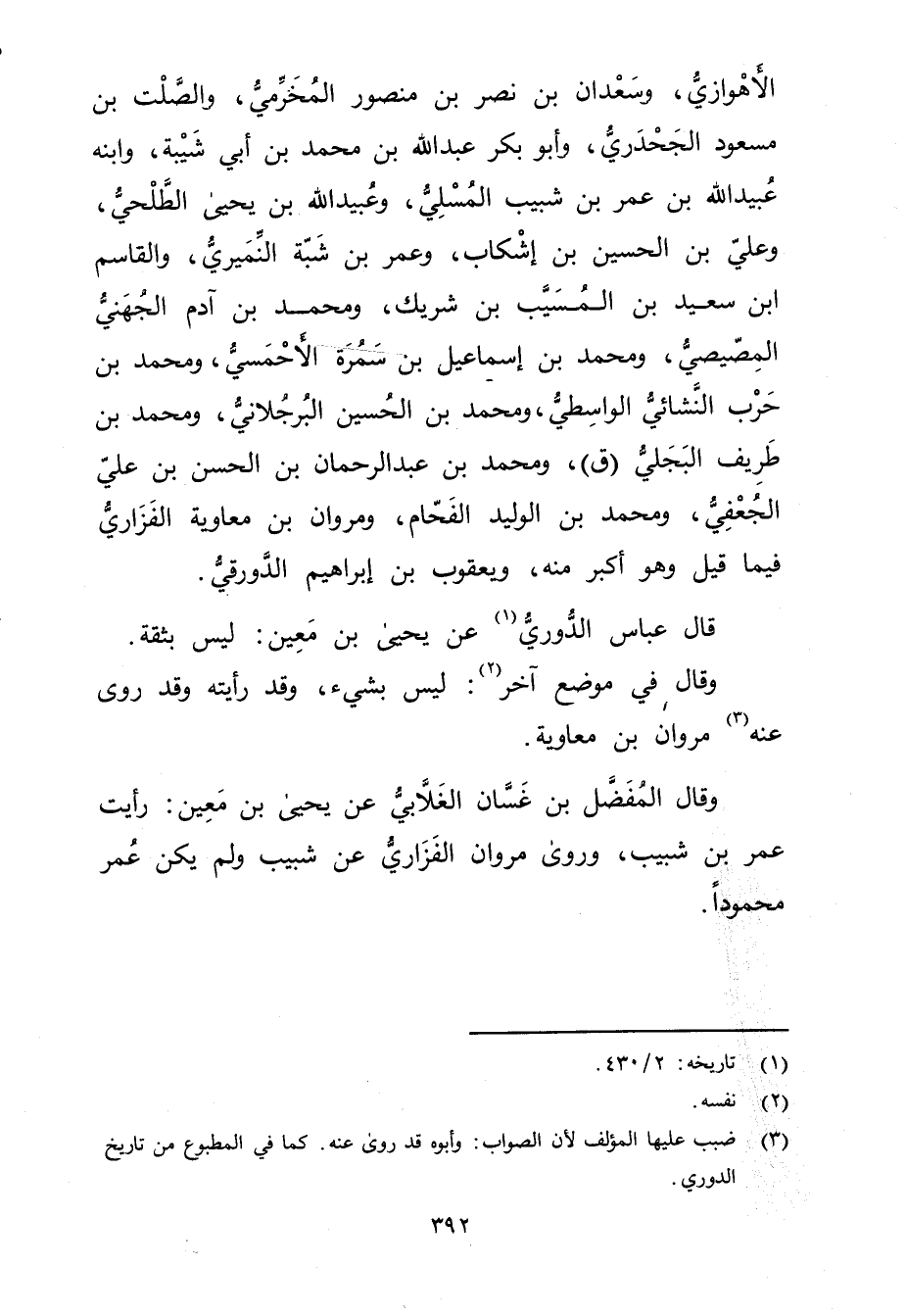 قال عَبَّاس الدُّورِيُّ (1) عَنْ يحيى بْن مَعِين: ليس بثقة.