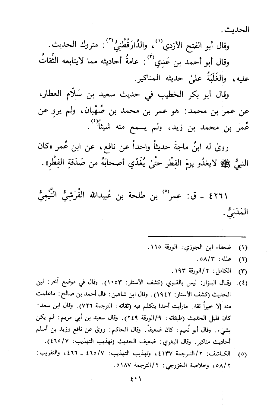 4261 - ق: عُمَر بْن طلحة بْن عُبَيد الله القرشي التَّيْمِيّ المدني (5) .