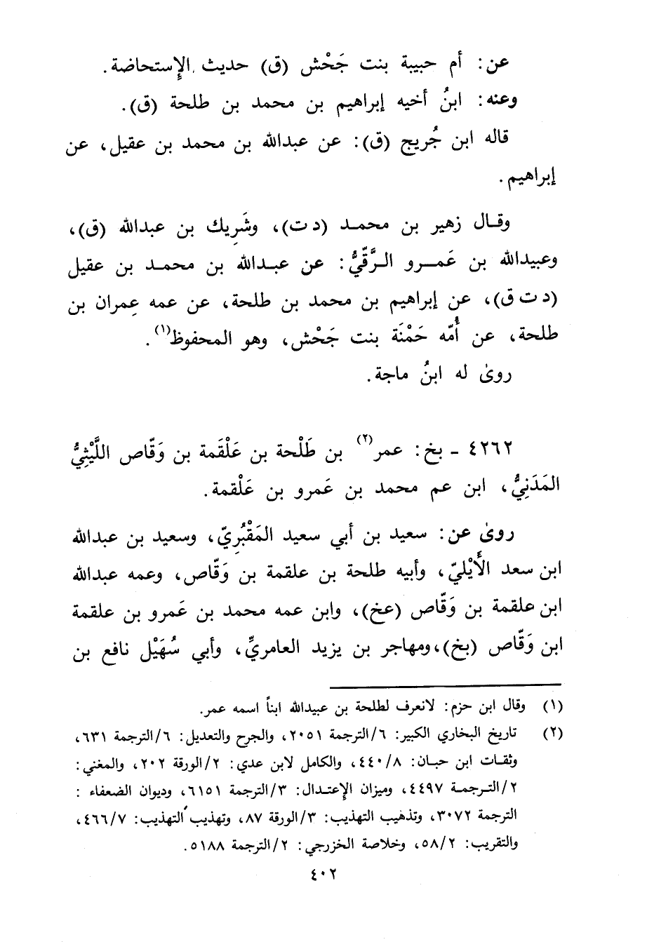 4262 - بخ: عُمَر بن طلحة بن علقمة بن وقاص الليثي المدني (2) ، ابْن عم محمد بن عَمْرو بن علقمة.