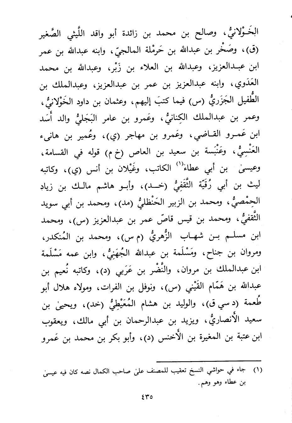 (1) جاء في حواشي النسخ تعقيب للمصنف على صاحب الكمال نصه كان فيه عيسى بن عطاء وهو وهم.