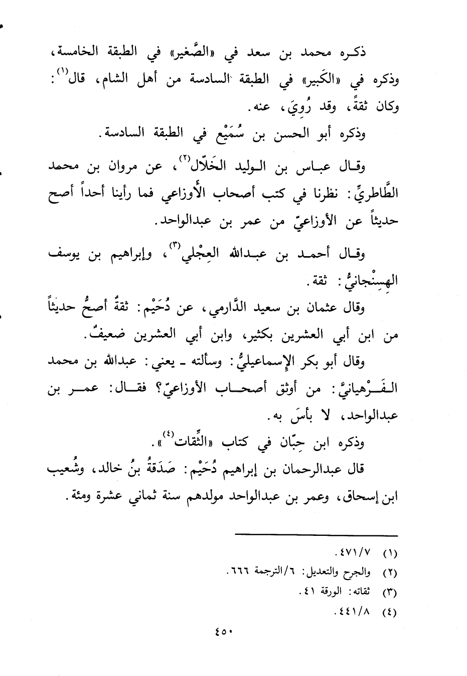 وَقَال عباس بْن الْوَلِيد الخلال (2) ، عَنْ مروان بْن محمد الطاطري: نظرنا فِي كتب أصحاب الأَوزاعِيّ فما رأينا أحدا أصح حديثا عن الأَوزاعِيّ من عُمَر بْن عبد الواحد.