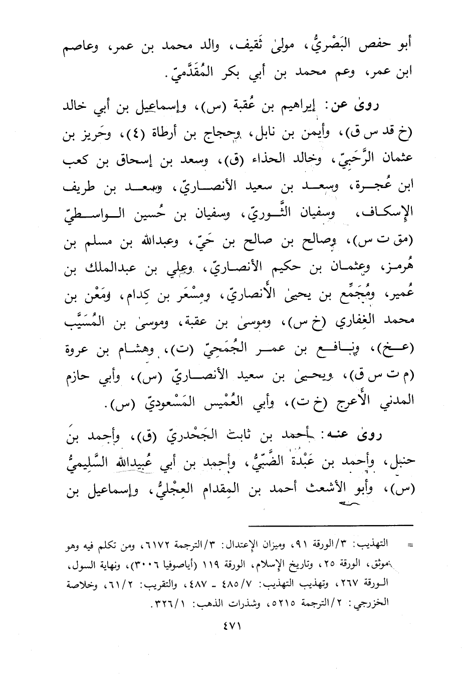 = التهذيب: 3 / الورقة 91، وميزان الاعتدال: 3 / الترجمة 6172، ومن تكلم فيه وهو موثق، الورقة 25، وتاريخ الاسلام، الورقة 119 (أيا صوفيا 3006) ، ونهاية السول، الورقة 267، وتهذيب التهذيب: 7 / 485 - 487، والتقريب: 2 / 61، وخلاصة الخزرجي: 2 / الترجمة 5215، وشذرات الذهب: 1 / 326.