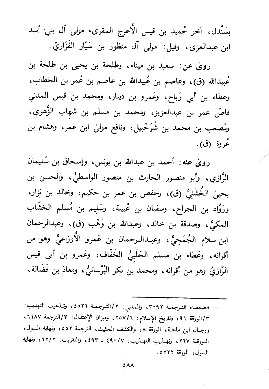 - الضعفاء الترجمة 3092، والمغني: 2 / الترجمة 4526، وتذهيب التهذيب: 3 / الورقة 91، وتاريخ الاسلام: 6 / 257، وميزان الاعتدال: 3 / الترجمة 6187، ورجال ابن ماجة، الورقة 8، والكشف الحثيث، الترجمة 552، ونهاية السول، الورقة 267، وتهذيب التهذيب: 7 / 490 - 493، والتقريب: 2 / 62، ونهاية السول، الورقة 5222.