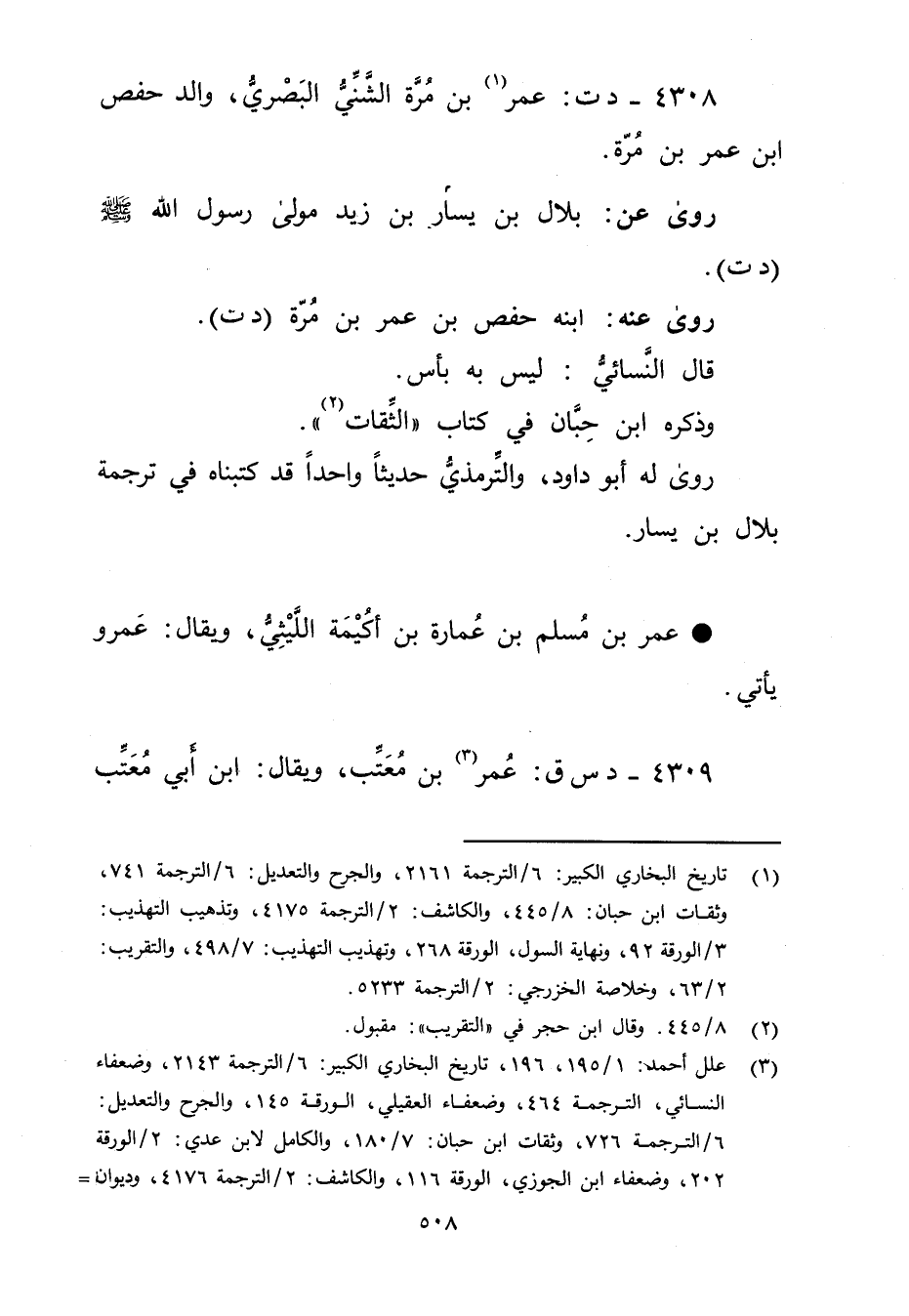 4308 - د ت: عُمَر بن مرة الشني البَصْرِيّ (1) ، والد حفص ابن عُمَر بْن مرة.