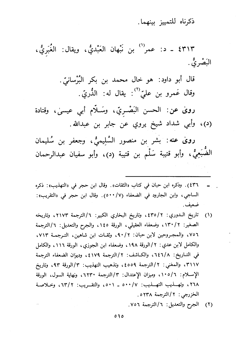 4313 - د: عُمَر بن نبهان العبدي (1) ، ويُقال: الغبري، البَصْرِيّ.