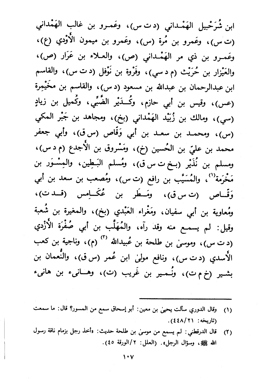 (2) قال الدارقطني: لم يسمع من موسى بن طلحة حديث: "أخذ رجل بزمام ناقة رَسُول الله صَلَّى الله عليه وسلم، وسؤال الرجل ". (العلل: 2 / الورقة 45) .