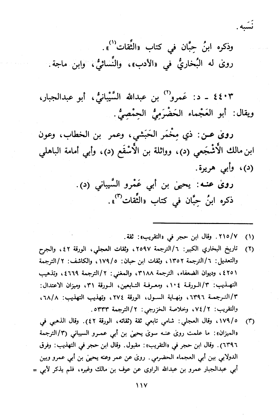 4403 - د: عَمْرو بن عَبد اللَّه السيباني (2) ، أبو عَبْد الجبار، ويُقال: أبو العجماء الحضرمي الحمصي.