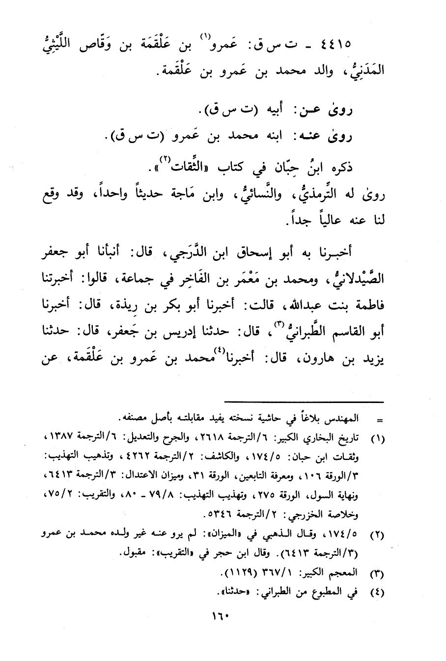 4415 - ت س ق: عَمْرو بن علقمة بن وقاص الليثي المدني (1) ، والد مُحَمَّد بْن عَمْرو بْن علقمة.