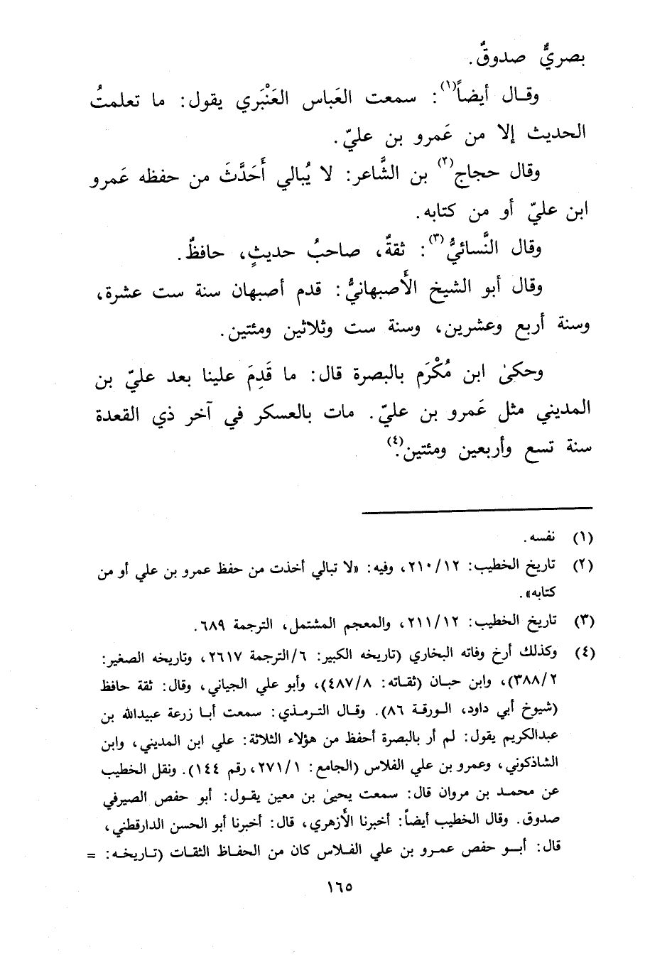 (2) تاريخ الخطيب: 12 / 210، وفيه: "لا تبالي أخذت من حفظ عَمْرو بْن عَلِيّ أو من كتابه.