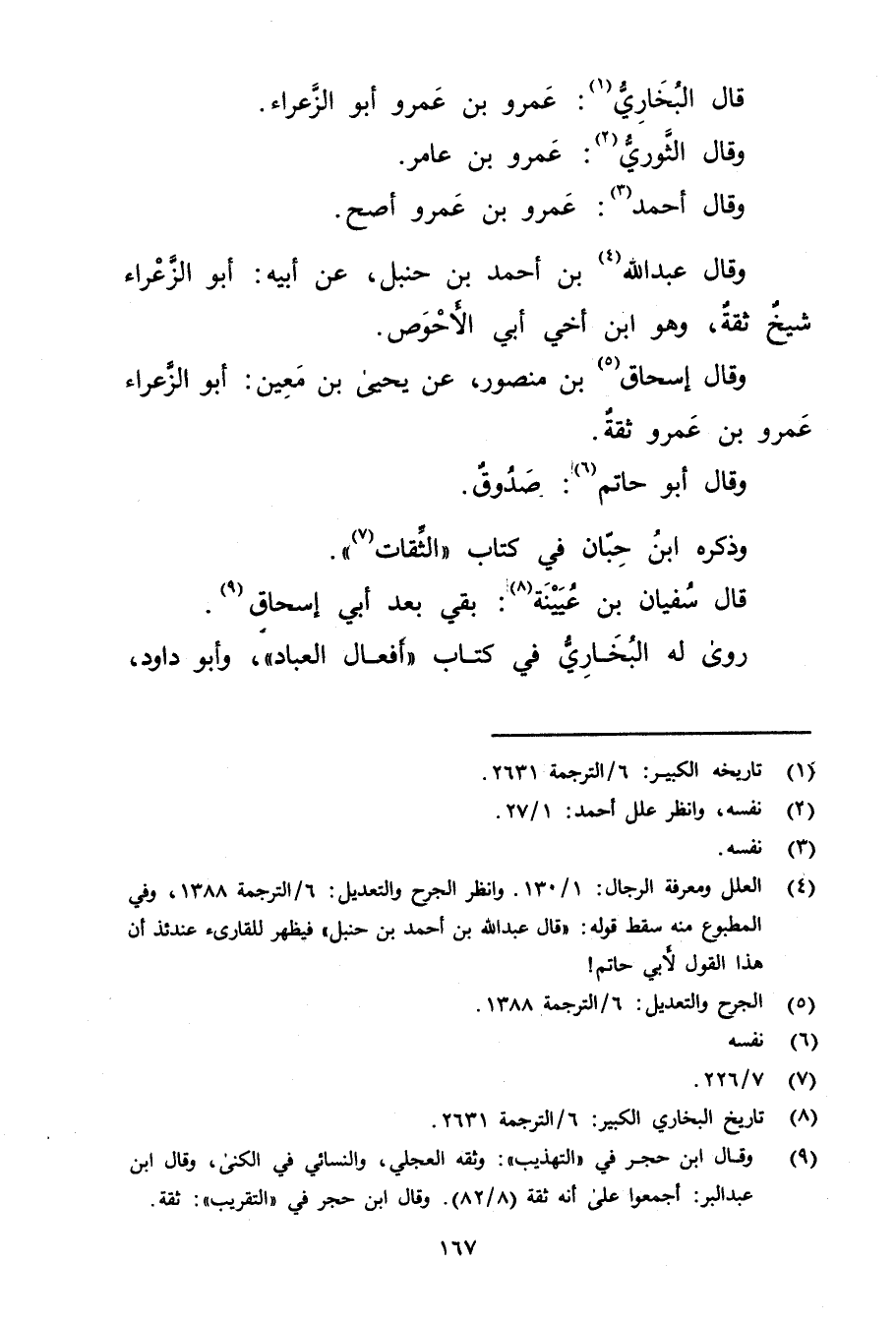 وَقَال إسحاق (5) بْن مَنْصُور، عَنْ يحيى بْن مَعِين: أبوالزعراء عَمْرو بْن عَمْرو ثقة.