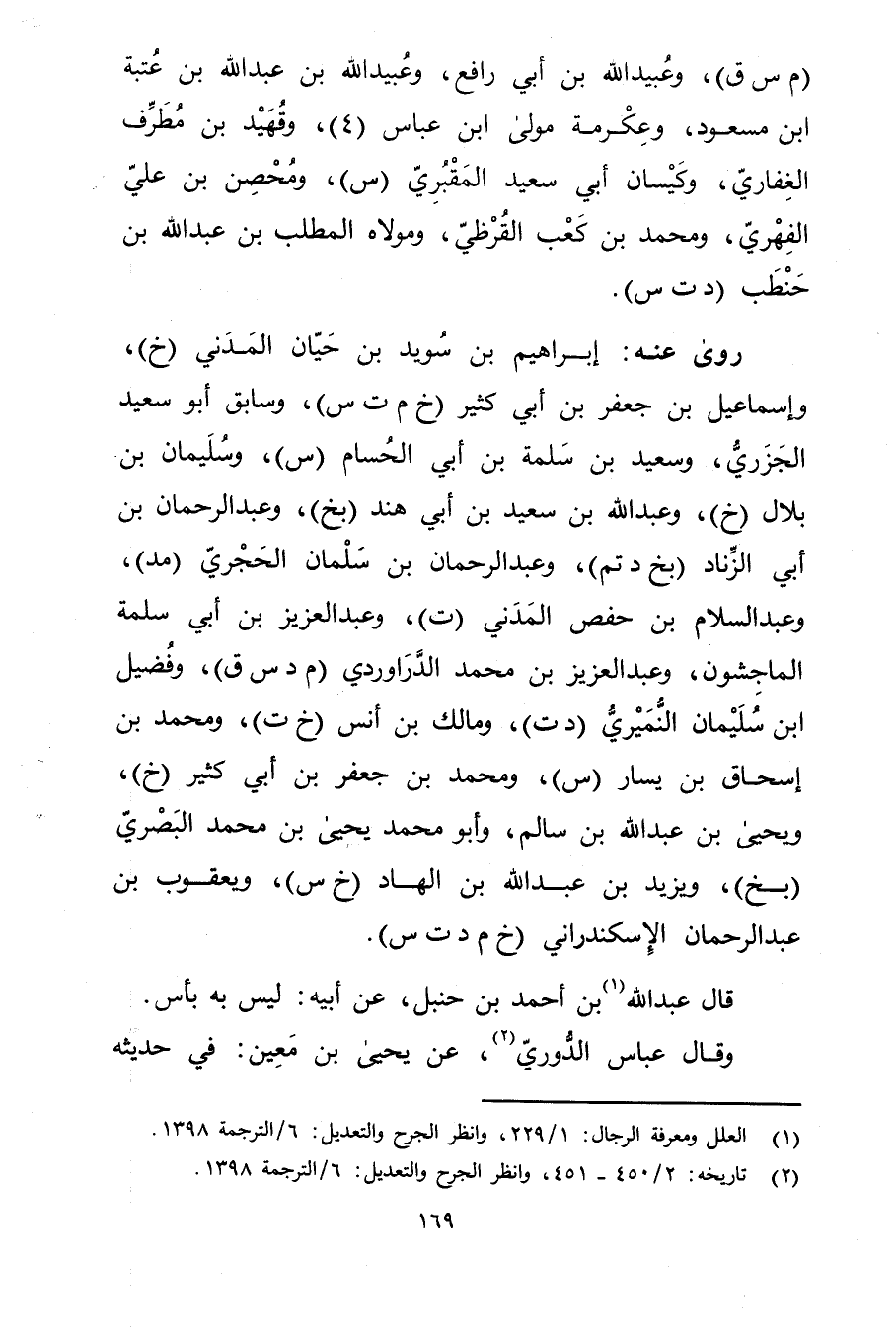 (1) العلل ومعرفة الرجال: 1 / 229، وانظر الجرح والتعديل: 6 / الترجمة 1398.