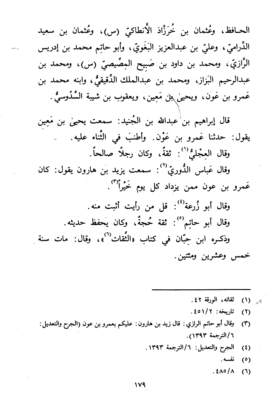 (3) وَقَال أبو حاتم الرازي: قال زيد بن هارون: عليكم بعَمْرو بن عون (الجرح والتعديل: 6 / الترجمة 1393) .