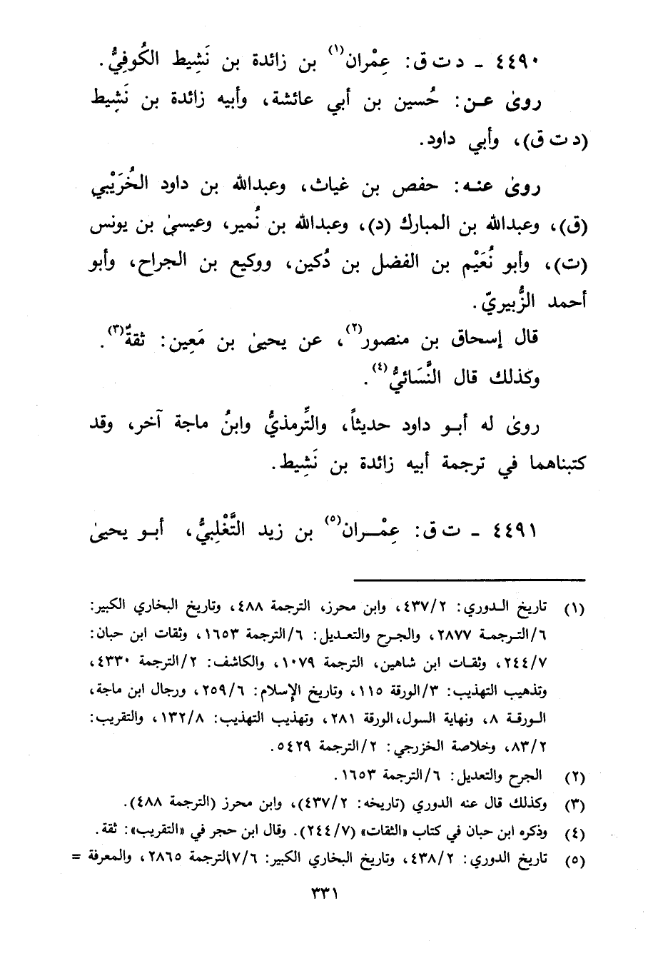 4490 - د ت ق: عِمْران بن زائدة بن نشيط الكوفي (1) .