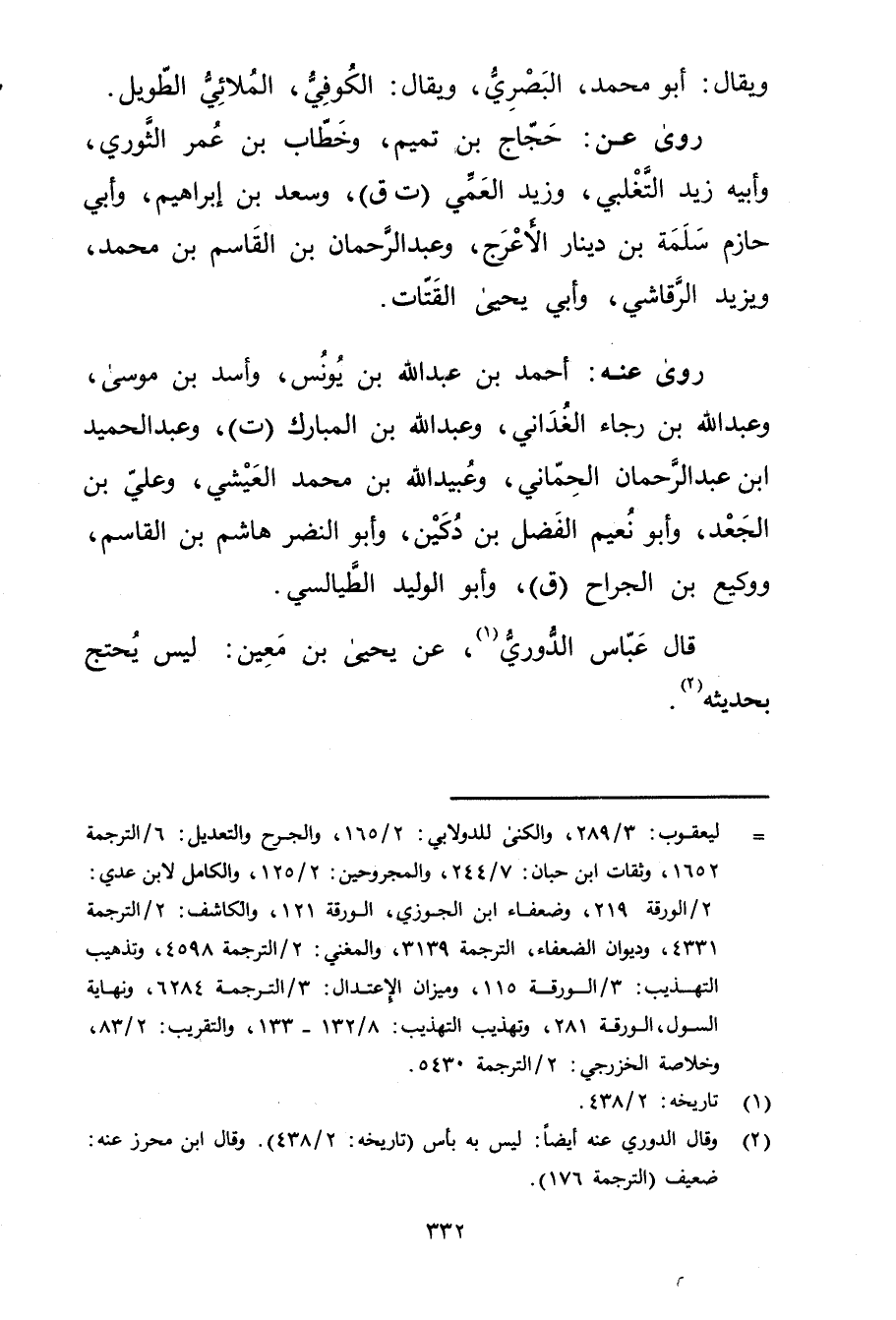 (2) وَقَال الدوري عنه أيضا: ليس به بأس (تاريخه: 2 / 438) . وَقَال ابن محرز عَنه: ضعيف (الترجمة 176) .