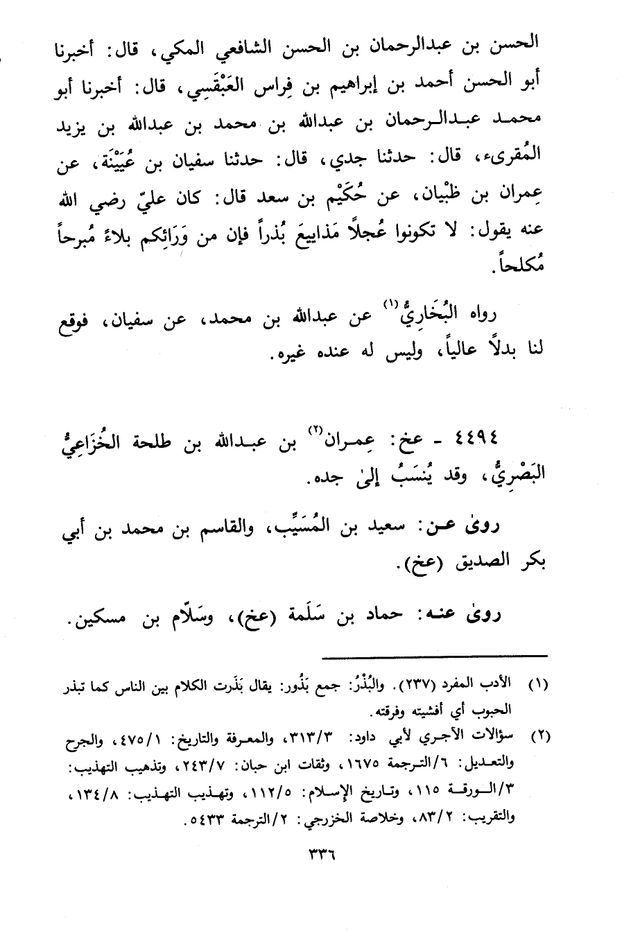 4494 - عخ: عِمْران بن عَبد اللَّه بن طلحة الخزاعي البَصْرِيّ (2) ، وقد ينسب إِلَى جده.
