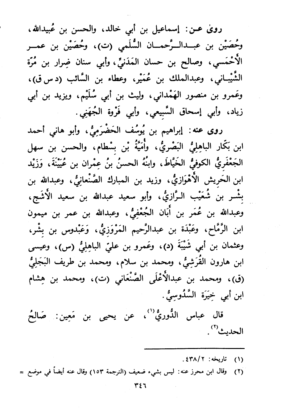 قال عباس الدُّورِيُّ (1) ، عَنْ يحيى بْن مَعِين: صالح الحديث (2) .