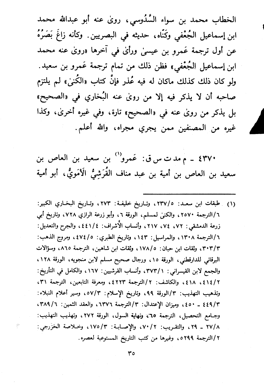 4370 - م مد ت س ق: عَمْرو بْن سَعِيد بْن العاص بن سَعِيد بن العاص بن أمية بن عبد مناف القرشي الأُمَوِي (1) ، أبو أمية
