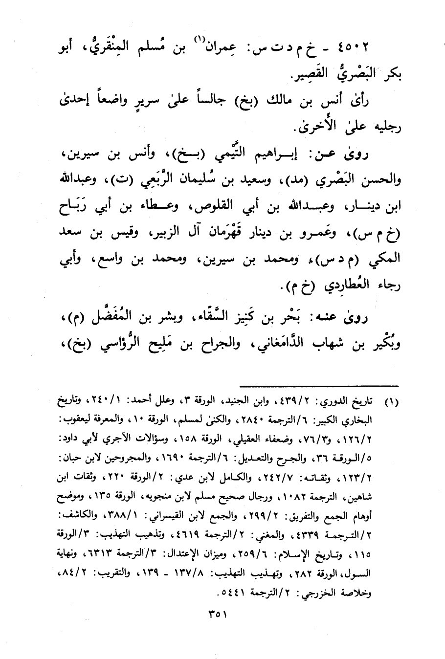 4502 - خ م د ت س: عِمْران بن مسلم المنقري (1) ، أَبُو بكر البَصْرِيّ القصير.