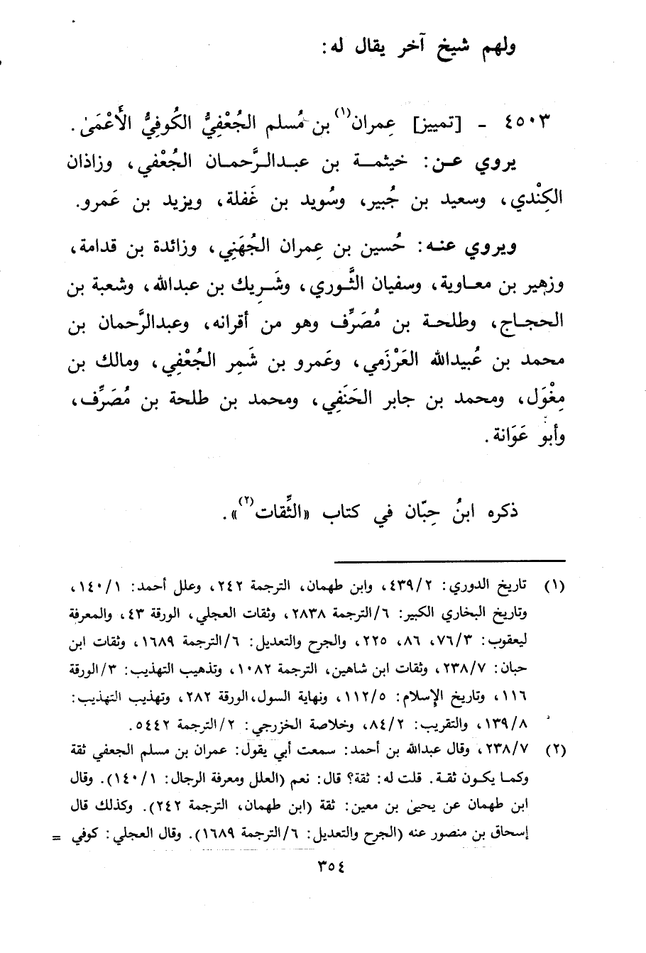 4503 - تمييز عِمْران بن مسلم الجعفي الكوفي الأعمى (1) .