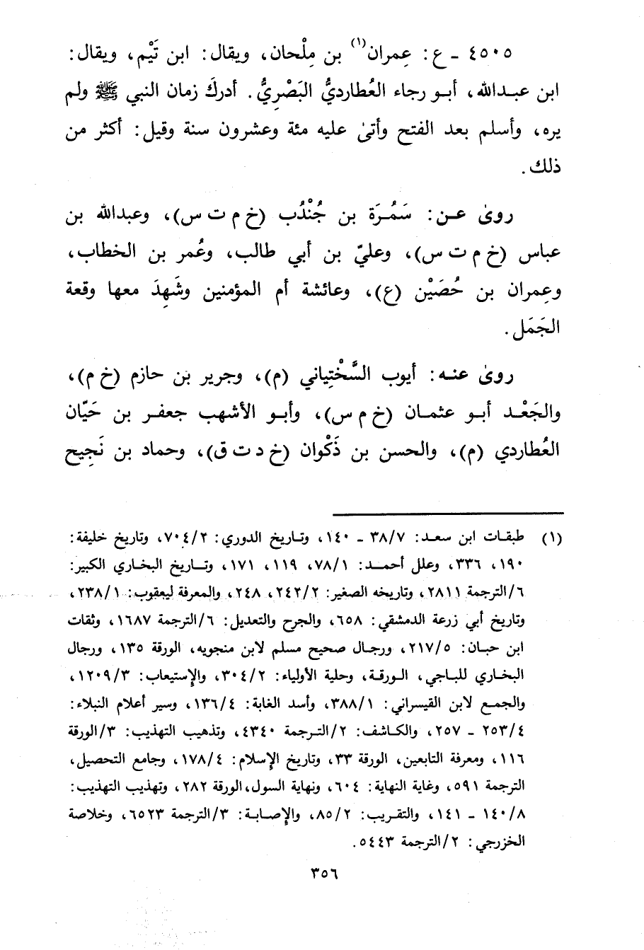 4505 - ع: عِمْران بن ملحان (1) ، ويُقال: ابْن تيم، ويُقال: ابْن عَبد اللَّه، أَبُو رجاء العطاردي البَصْرِيّ.