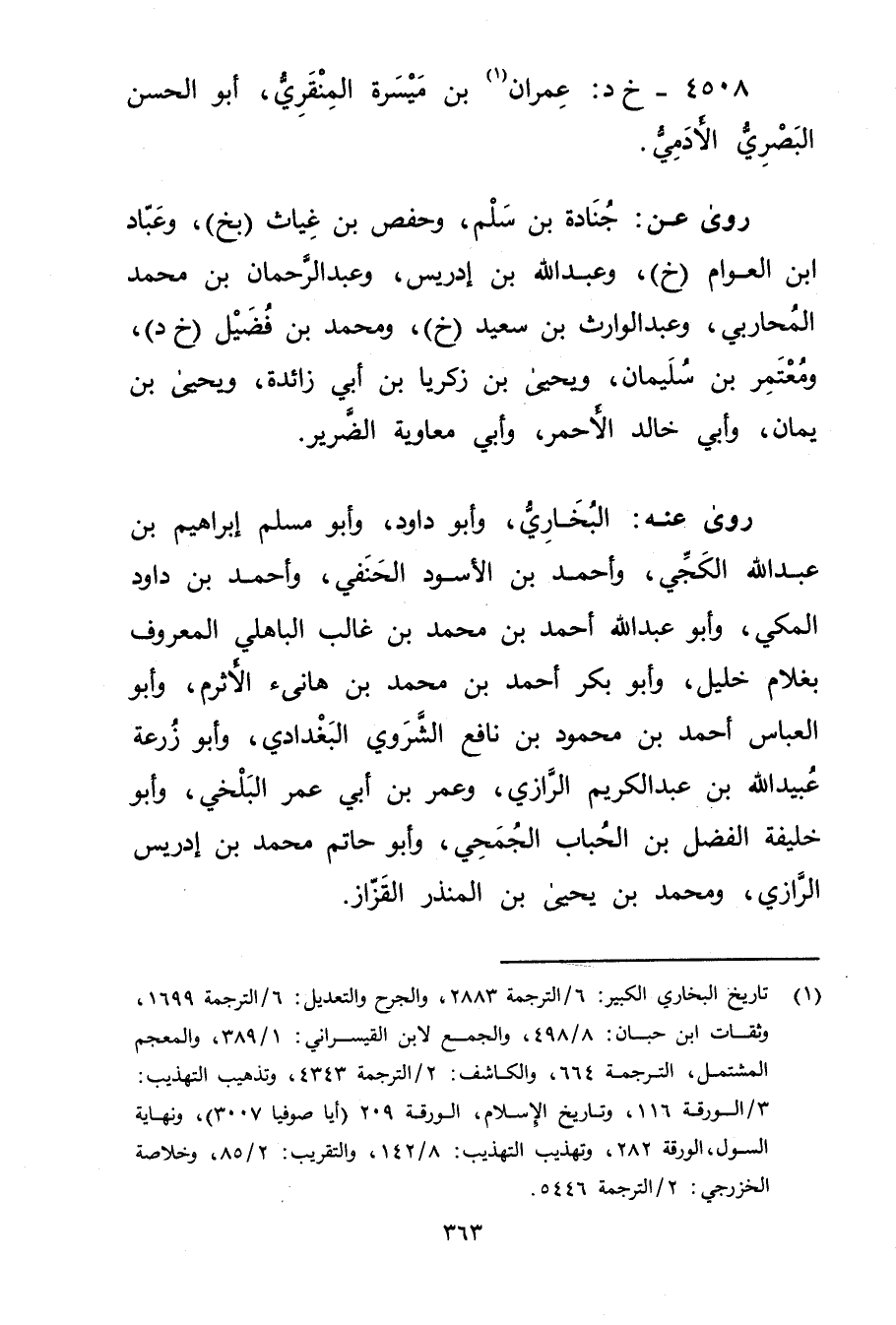 4508 - خ د: عِمْران بن ميسرة المنقري (1) ، أَبُو الحسن البَصْرِيّ الأدمي.