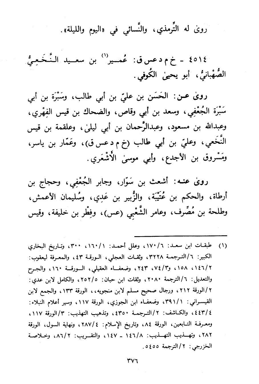 4514 - خ م د عس ق: عُمَير بن سَعِيد النخعي الصهباني (1) ، أبويحيى الكوفي.