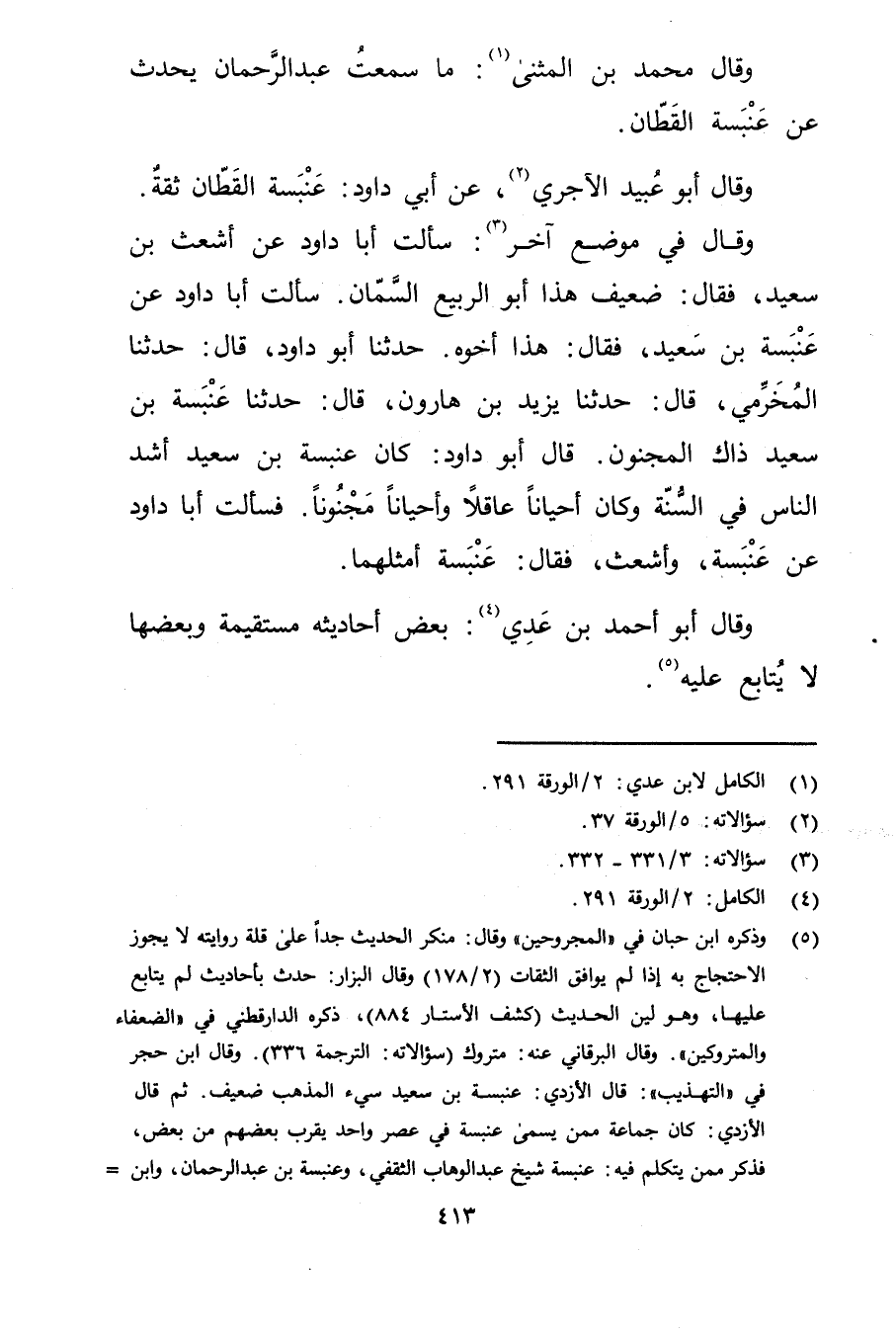(1) الكامل لابن عدي: 2 / الورقة 291.