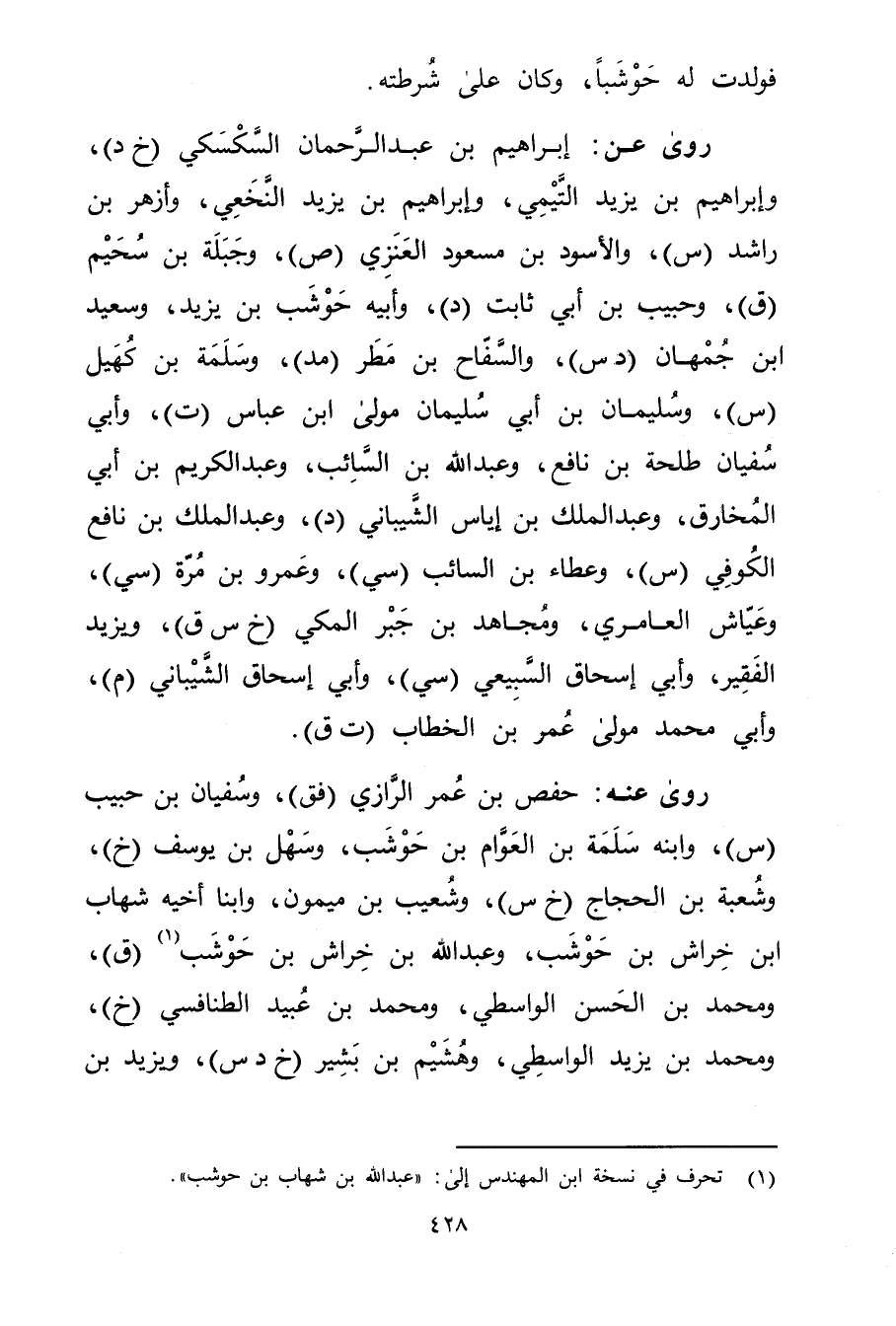 (1) تحرف في نسخة ابن المهندس إلى: "عَبد اللَّهِ بن شهاب بن حوشب ".