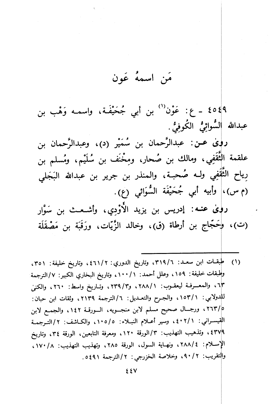 4549 - ع: عون بن أَبي جحيفة (1) ، واسمه وهب بْن عَبد اللَّه السوائي الكوفي.