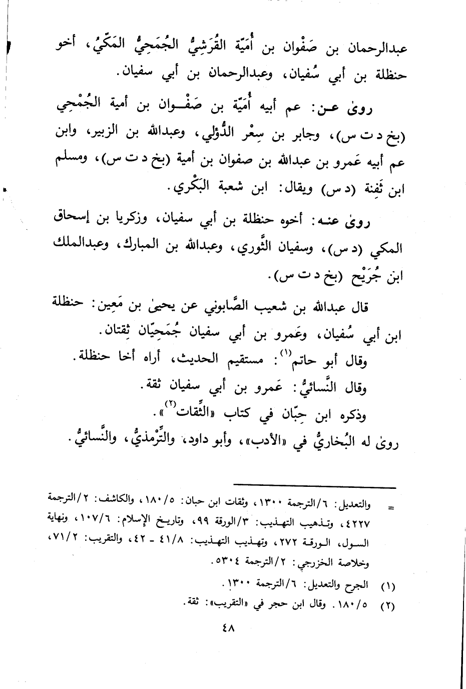 قال عَبد اللَّهِ بْن شعيب الصابوني عَنْ يحيى بْن مَعِين: حنظلة ابن أَبي سفيان، وعَمْرو بن أَبي سفيان جمحيان ثقتان.