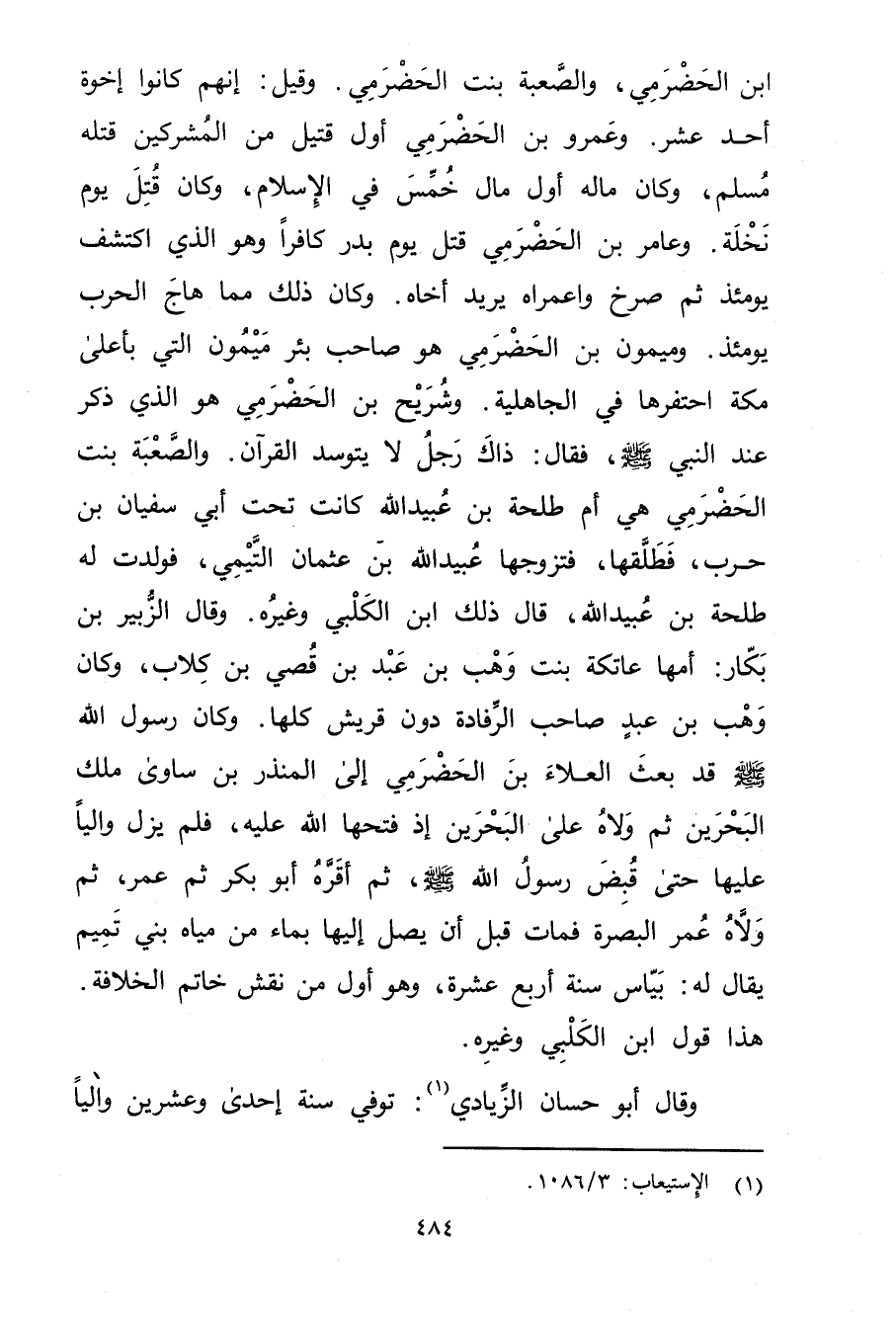(1) الاستيعاب: 3 / 1086.