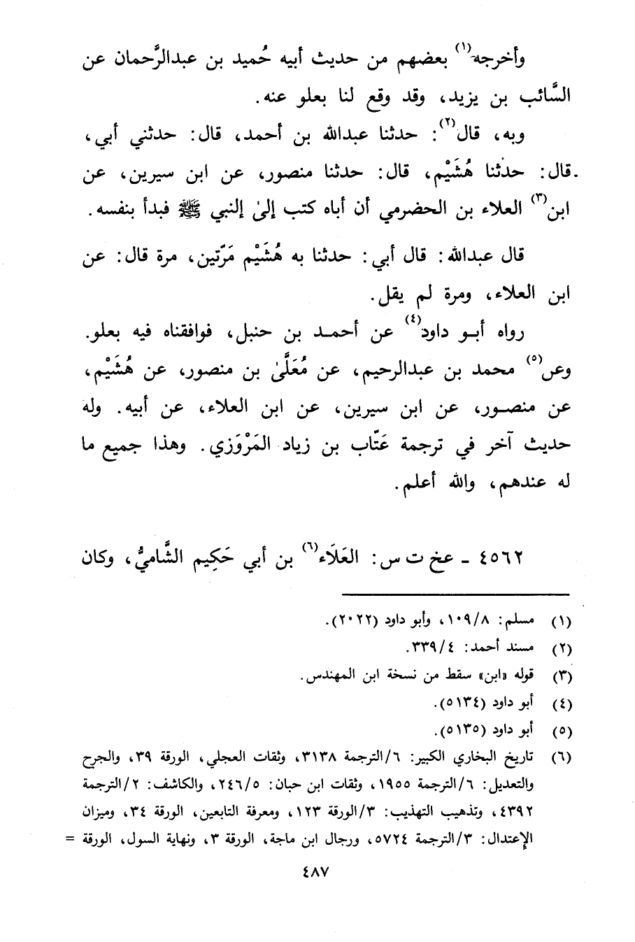 4562 - عخ ت س: العلاء بن أَبي حَكِيم الشامي (6) ، وكان