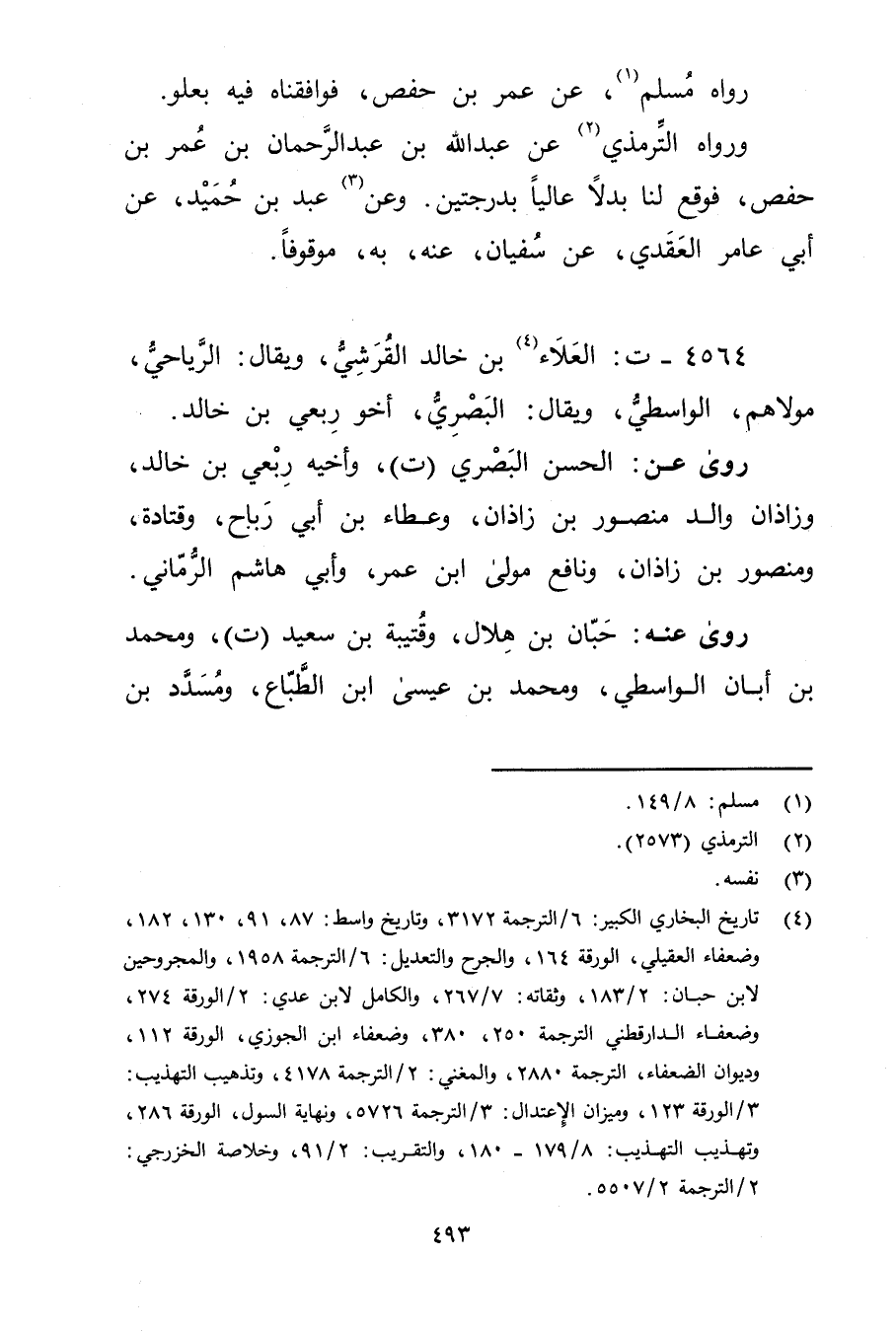 4564 - ت: العلاء بن خالد القرشي (4) ، ويُقال: الرياحي، مولاهم، الواسطي، ويُقال: البَصْرِيّ، أخو ربعي بْن خالد.