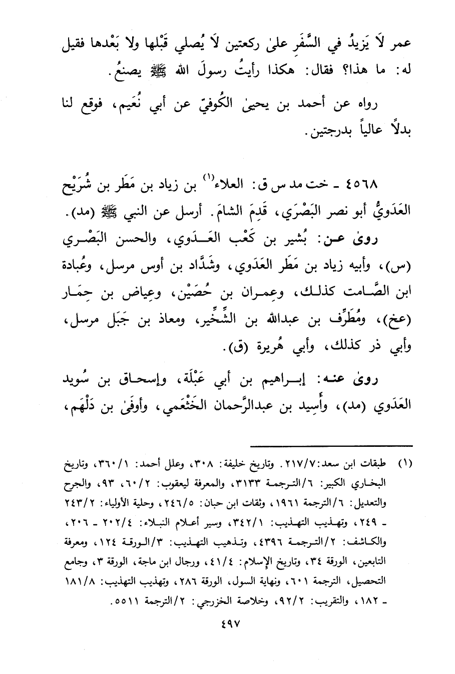 4568 - خت مد س ق: العلاء بن زياد بن مطر بن شريح العدوي أَبُو نصر البَصْرِيّ (1) ، قدم الشام. أرسل عَنِ النبي صَلَّى اللَّهُ عَلَيْهِ وسَلَّمَ (مد) .