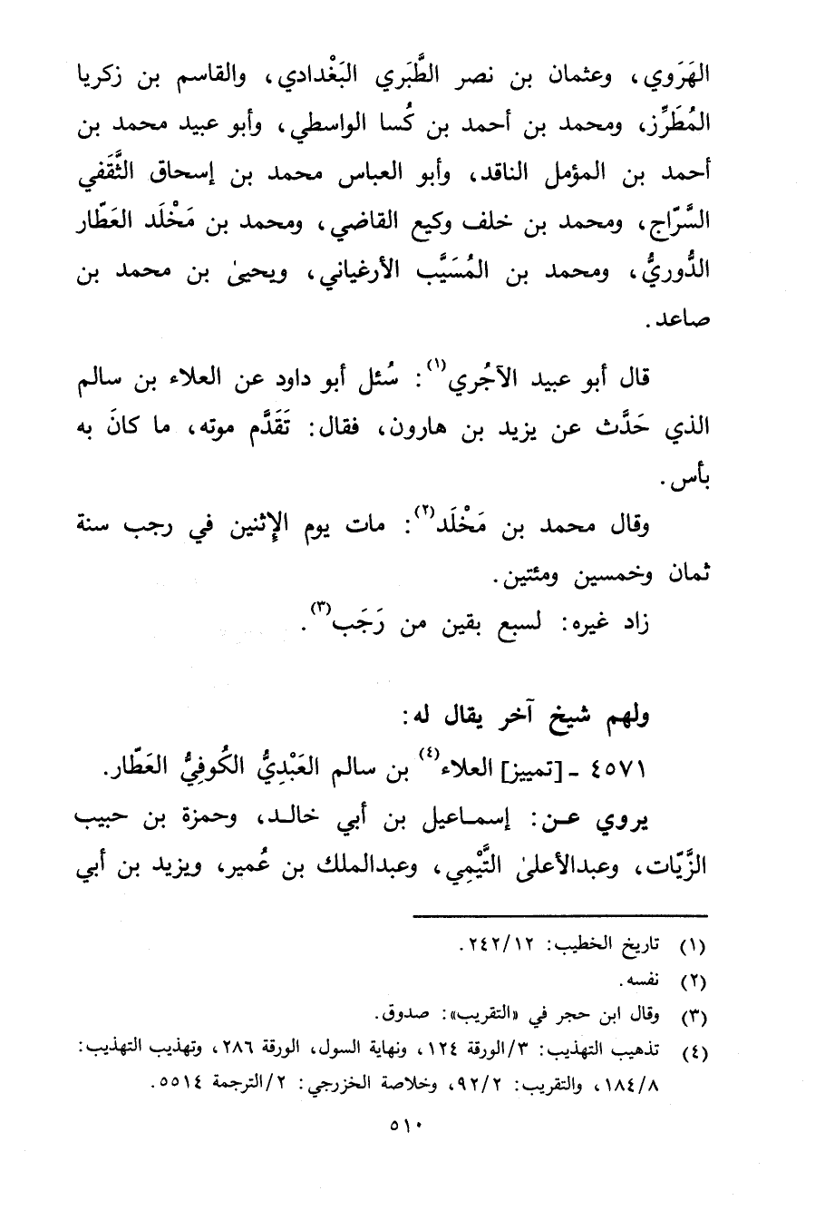 4571 - تمييز العلاء بن سالم العَبْدي الكوفي العطار (4) .
